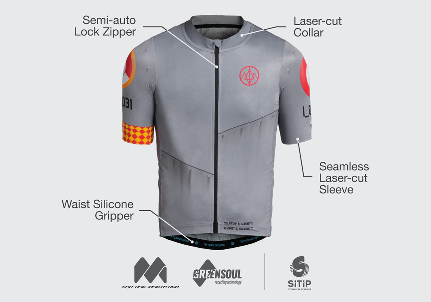The main course of our collaboration with Temple Project, the expert of cycling apparel. A versatile jersey built to provide optimal comfort. Recycled Italian fabric tailored to contour fit your body with thermo-sealed laser cutting on the sleeves and collar for seamless comfort. Hydrophilic to absorb more moisture, abrasion resistant, and UV UPF rated for more protection against the sun. Also features full-vented mesh back for more air circulation and silicone gripper on the waist to reduce slippage. Designed after The Spitfire, a warplane known for its versatility in doing various missions.