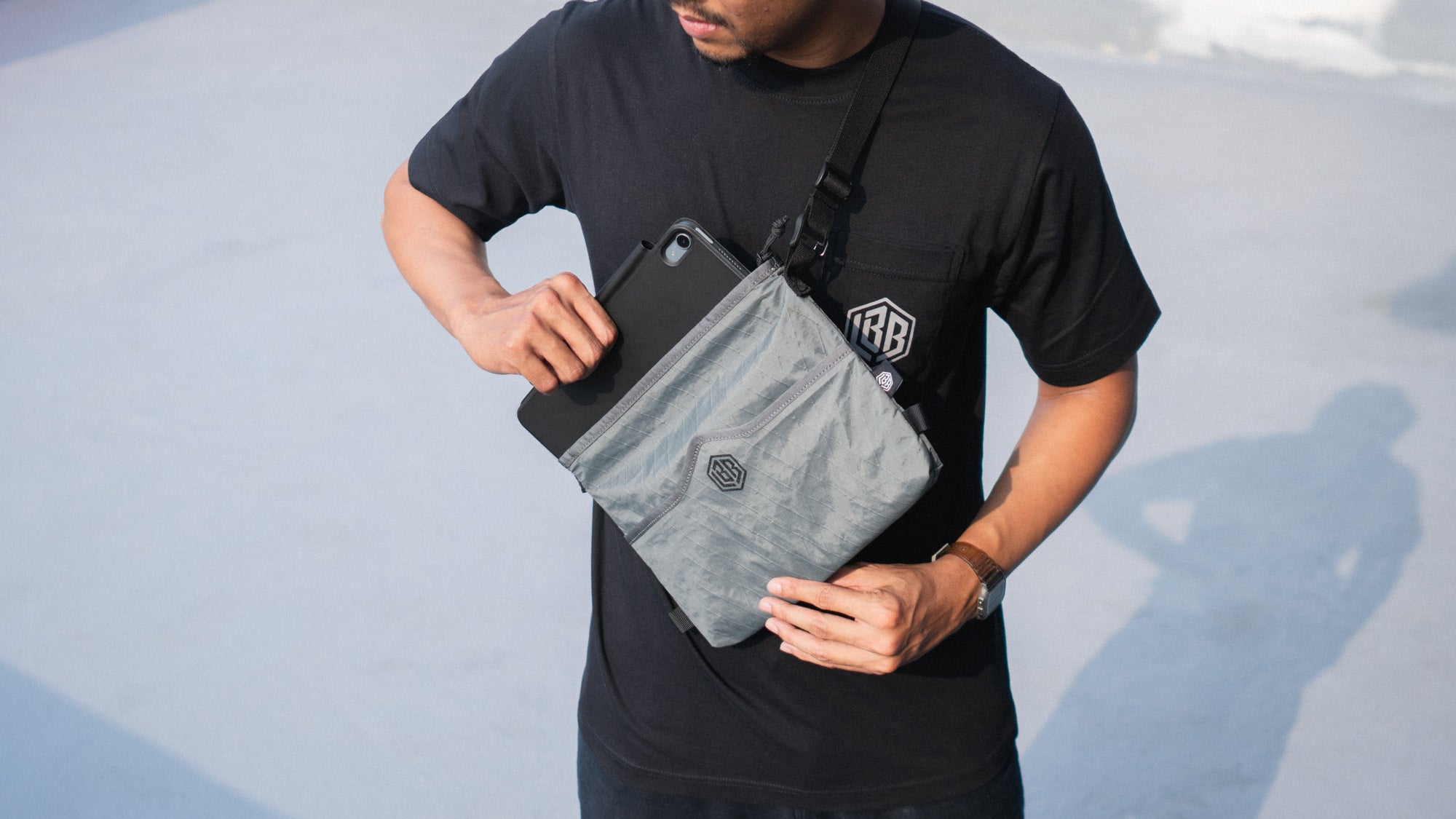 The size is just enough if you’re light on your EDC. With protective padded internals, It’s also no coincidence that the dimension happens to be an exact fit for an 11” iPad. Durable build is still a given, but we were also intentional on the sleekness of the look and feel. Combining several fabric textures in monochromatic colorway makes the bag look fitting in a variety of settings, from grinding on the streets, to attending your local fashion-week.