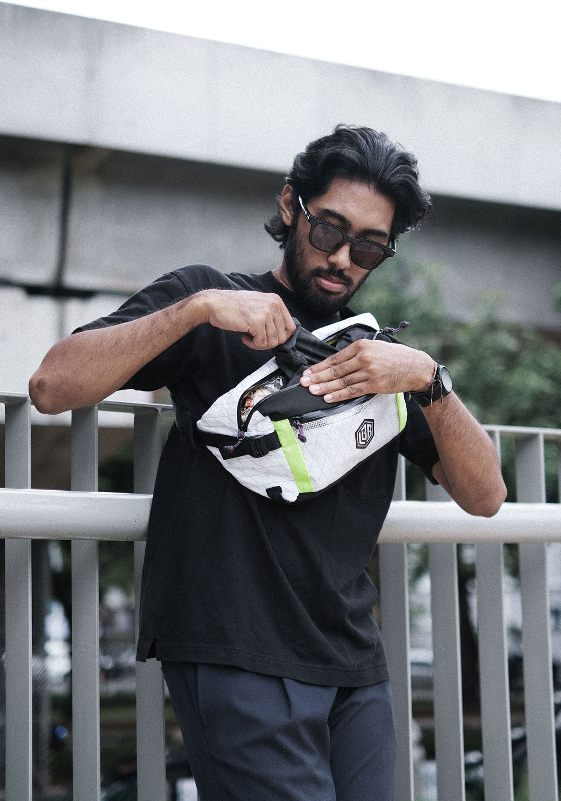 The Sprint Sling is a no-nonsense zip-top crossbody bag. While the name would lead you to believe it is to be worn exclusively as a sling bag, we actually designed it to be worn on the waist as well. The prominent feature on this one is without a doubt, the front window, which is shielded by a heavy duty semi-transparent ripstop fabric. whether you utilize it pragmatically by having your most frequently used items visible at all times, or for its flex factor by putting the latest and greatest iPhone in there, is entirely up to you. They say “the eye is the window to the soul”, but this window does not go all the way through, so you can still put your deepest darkest secret in the main compartment. Speaking of secrets, this bag also has one secret-stash pocket. We won’t tell you where it is cuz then it wouldn’t be a secret anymore. On the sides, the compression straps have been measured precisely to also be the perfect place to haul U-locks, or depending on where you live, they might also be called D-locks.