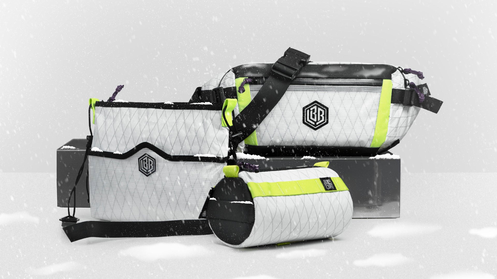The Arctic/Cyberlime version of Sprint SL, uses VX07 white ripstop fabric by X-Pac®. Which comprises three laminated layers: an inner layer of lightweight polyester film that minimizes stretch and offers waterproofing, a mid-layer of recycled X-Ply® fibers that enhances stability and tear resistance, and an outer layer of 70D ripstop nylon with a Durable Water Repellent (DWR) coating. The Sprint SL Arctic/Cyberlime is 13% lighter than the regular version.