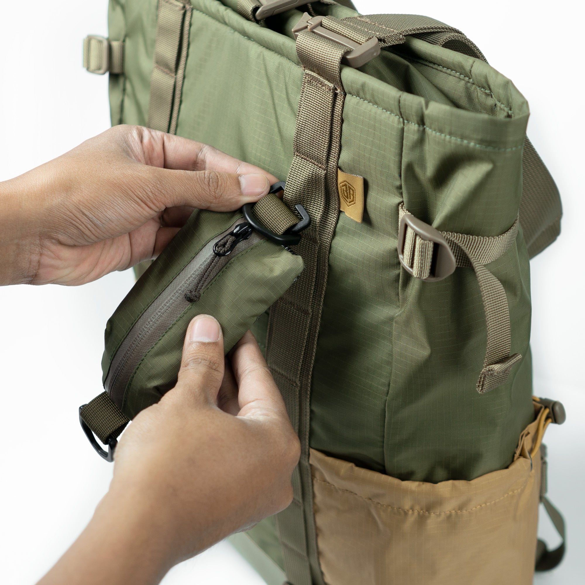 Dex pouch is a versatile utility pouch for your quick access, smaller daily essentials. With a built-in card holder accommodating up to 5 cards, and a vertical zipper opening for easy access to pocket tools, coins, or earphones. Featuring two D-rings and a loop for seamless integration with our Transition Technical Totepack. But of course, you can attach it anywhere through 1-inch webbing or carabiner – perfect for bags, belt loops, or keys. Compact and adaptable, stash it in another pouches, pockets, or bags as you prefer.