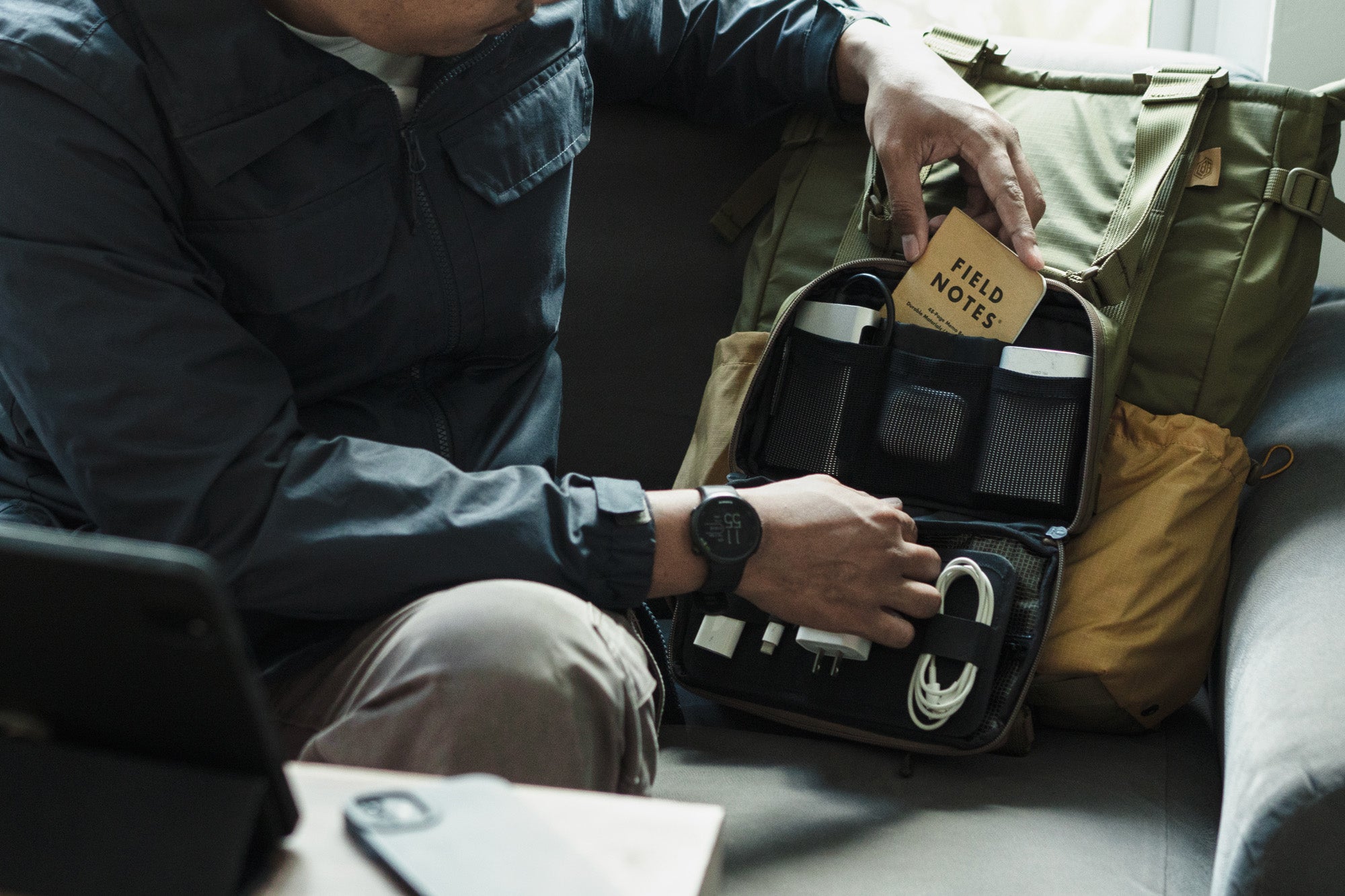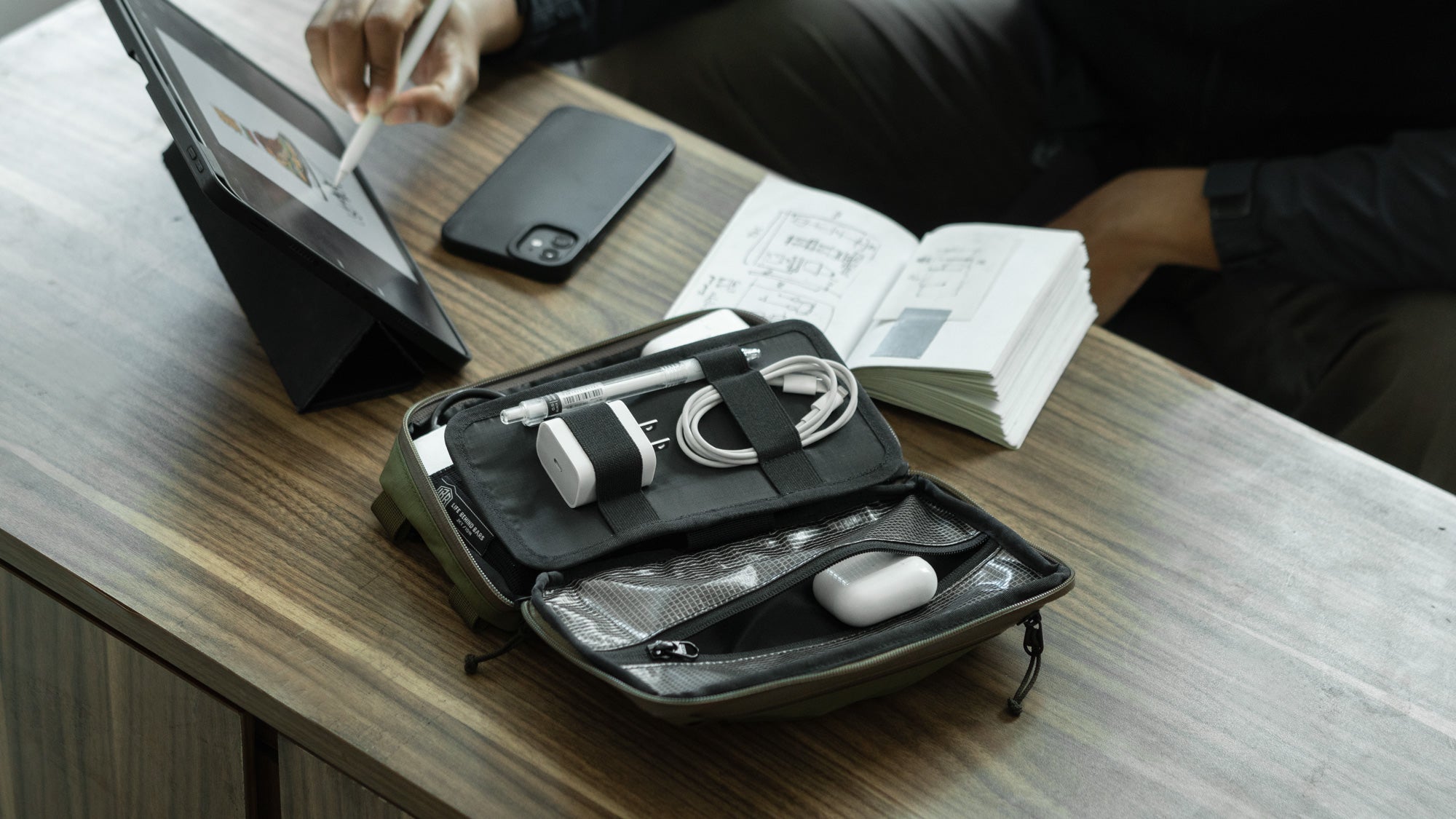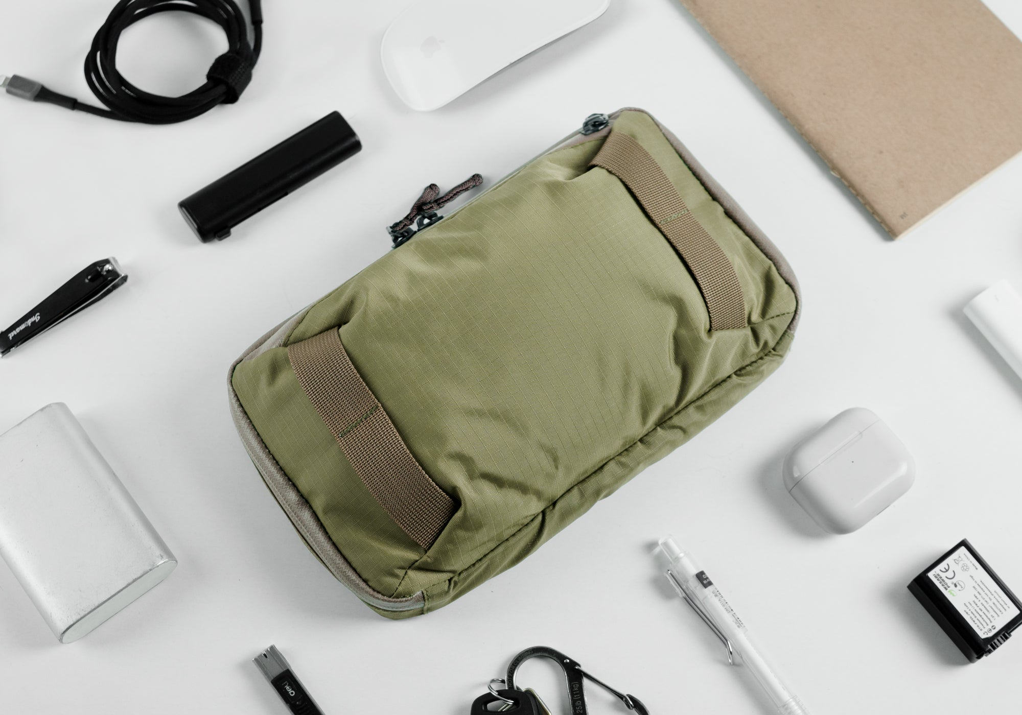The Division - Half Pouch is a versatile organizational solution for everyday carry essentials. Carried on its own with the help of the rear grab handle or with the optional sling strap, this 2-liter pouch features three elastic pockets, a double-sided organizer tray, and two full-length pockets, one of which is also accessible from the outside for quick retrieval. Use it to organize your Tech gear, Toiletries, or Medkit, just to name a few, adapting effortlessly to your needs. It seamlessly integrates with the Transition Tote via the clip system and is modular, allowing stacking with another Half Pouch or pairing with other Division lineup pouches such as the Quarter Pouch or Dex Mini Pouch for expanded organizational possibilities.