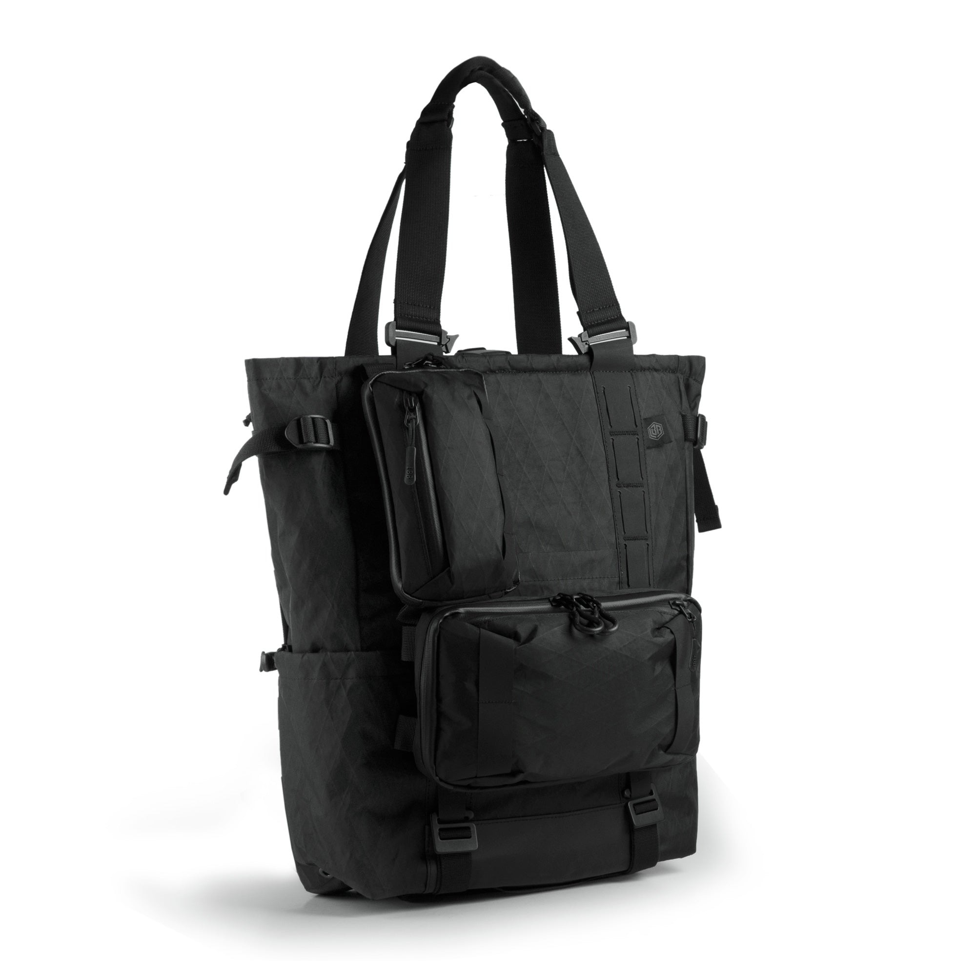 X21 Black X-Pac™ fabric • DWR 210D nylon ripstop inner lining • Transparent ripstop pocket • Nylon webbing • Hypalon loops • Padded constructions • YKK Aquaguard® zipper • Elastic pockets • Elastic webbing slots