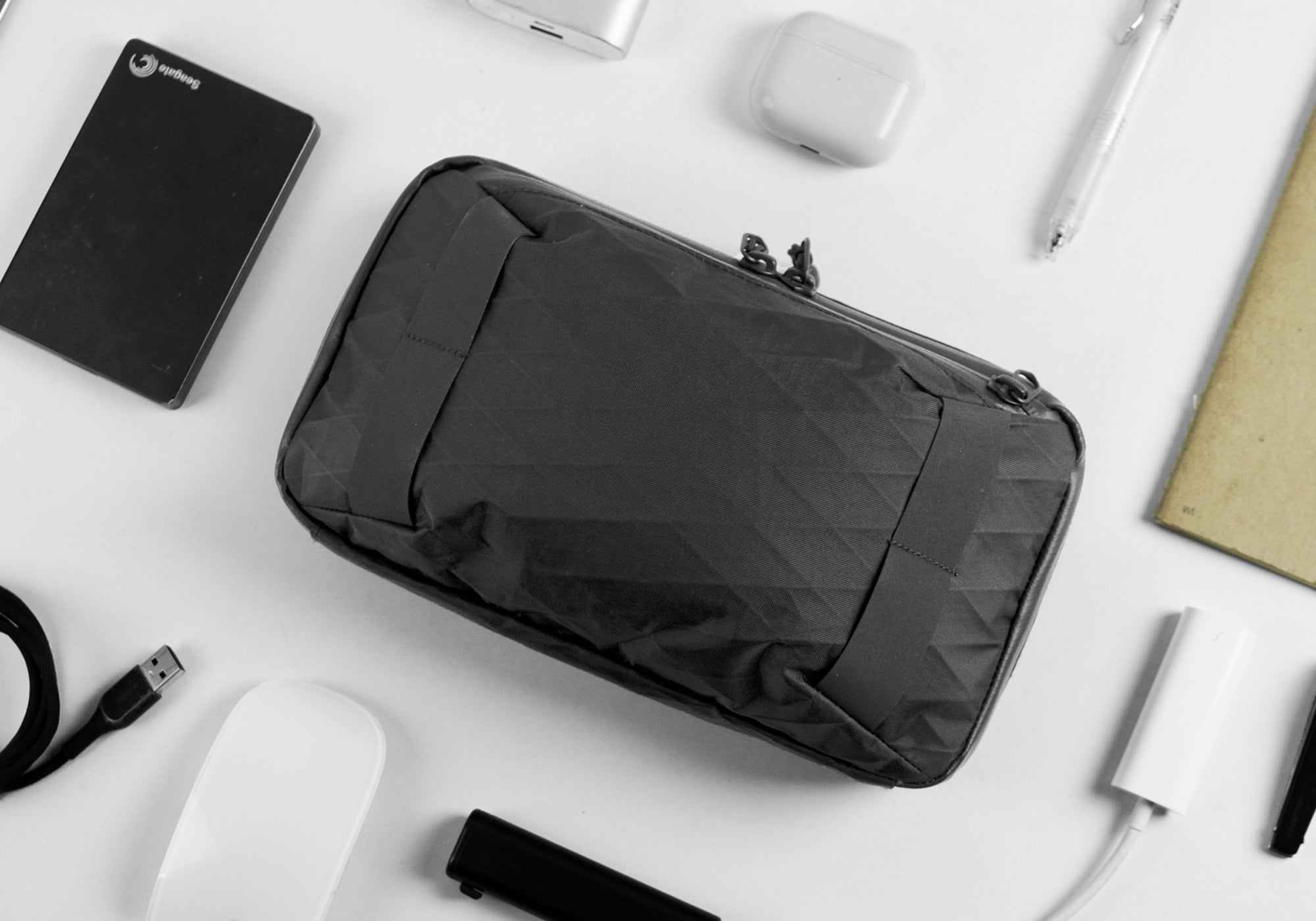 The Division - Half Pouch is a versatile organizational solution for everyday carry essentials. Carried on its own with the help of the rear grab handle or with the optional sling strap, this 2-liter pouch features three elastic pockets, a double-sided organizer tray, and two full-length pockets, one of which is also accessible from the outside for quick retrieval. Use it to organize your Tech gear, Toiletries, or Medkit, just to name a few, adapting effortlessly to your needs. It seamlessly integrates with the Transition Tote via the clip system and is modular, allowing stacking with another Half Pouch or pairing with other Division lineup pouches such as the Quarter Pouch or Dex Mini Pouch for expanded organizational possibilities.