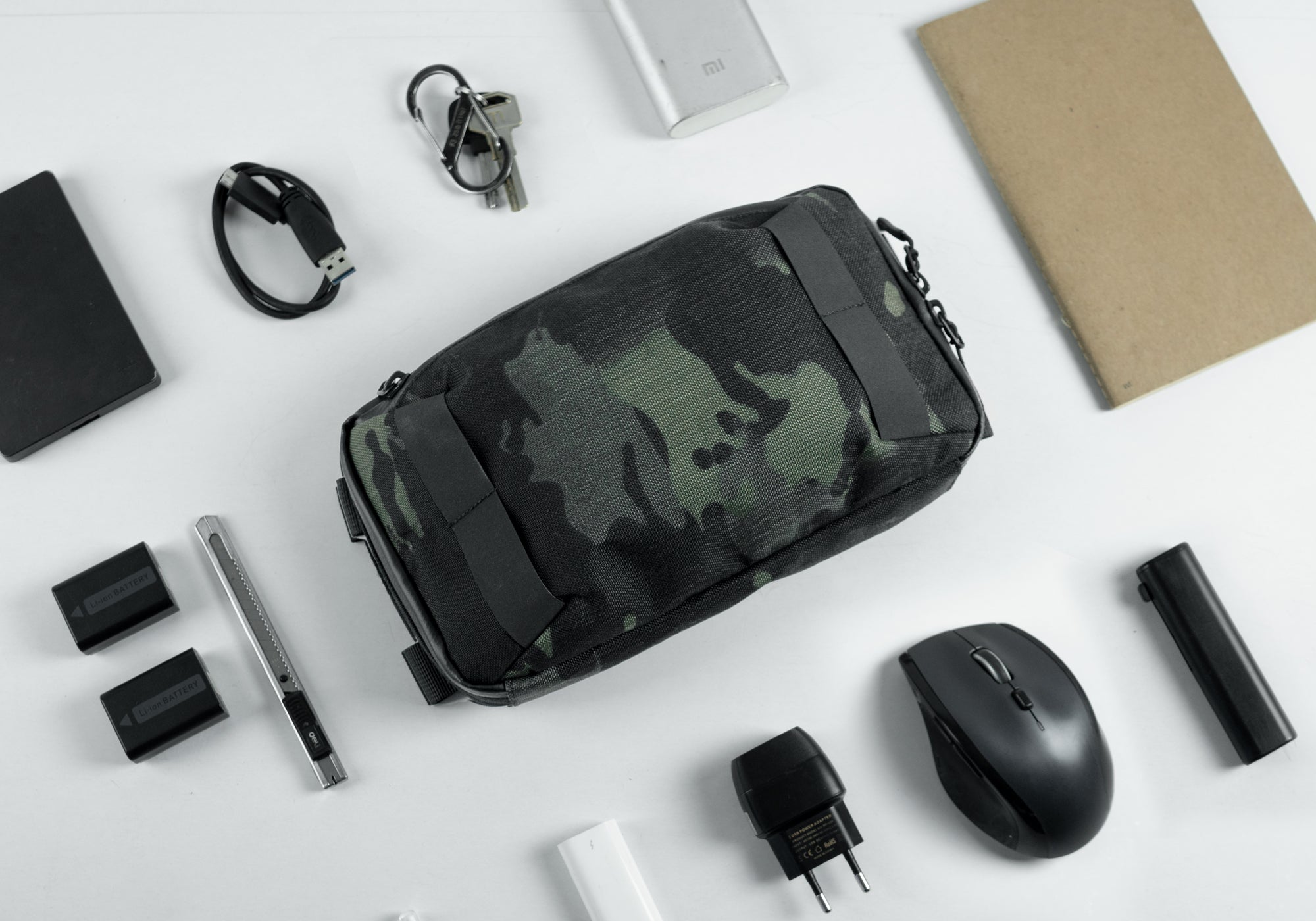 X50 Multicam Black outer shell • DWR 210D nylon ripstop inner lining • Transparent ripstop pocket • Nylon webbing • Hypalon loops • Padded constructions • YKK Aquaguard® zipper • Elastic pockets • Elastic webbing slots