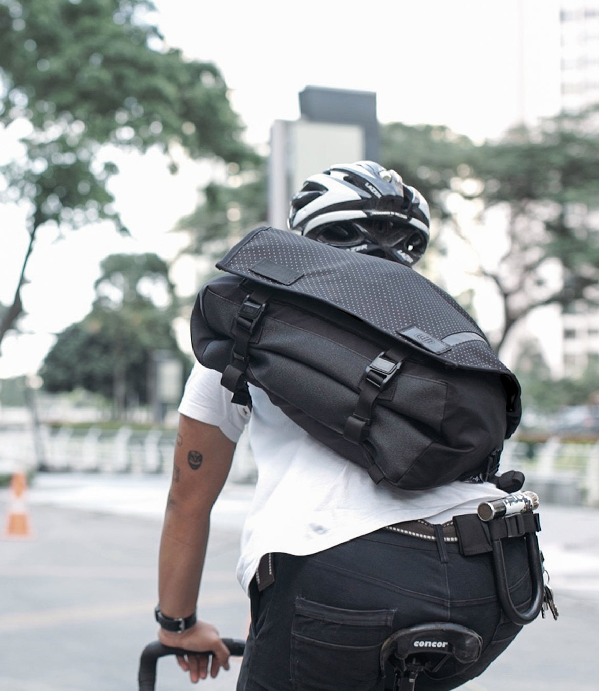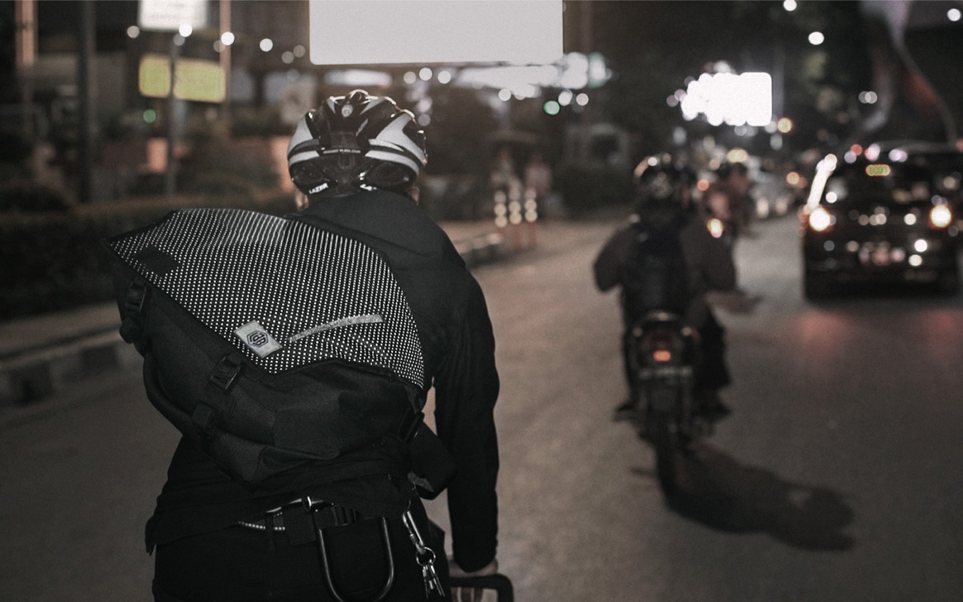 Our mantra has always been "when in doubt, go all black". It's the colorway that is most unsuspecting, inconspicuous, fits just about any occasion, and not to mention badass. Yet, at night, and on the road where safety matters most, the whole bag turns super bright due to thousands of embedded micro retroreflective dots that send light back to its source. Other parts also don't go unchecked, details such as the webbings and trims are treated with 3M® Black reflective finish. You don't have to dress like a road-worker in order to be visible at night. The Eclipse series does not sacrifice form for the sake of feature, on the contrary, it elevates the aesthetic by making a seemingly stealthy bag, highly functional.