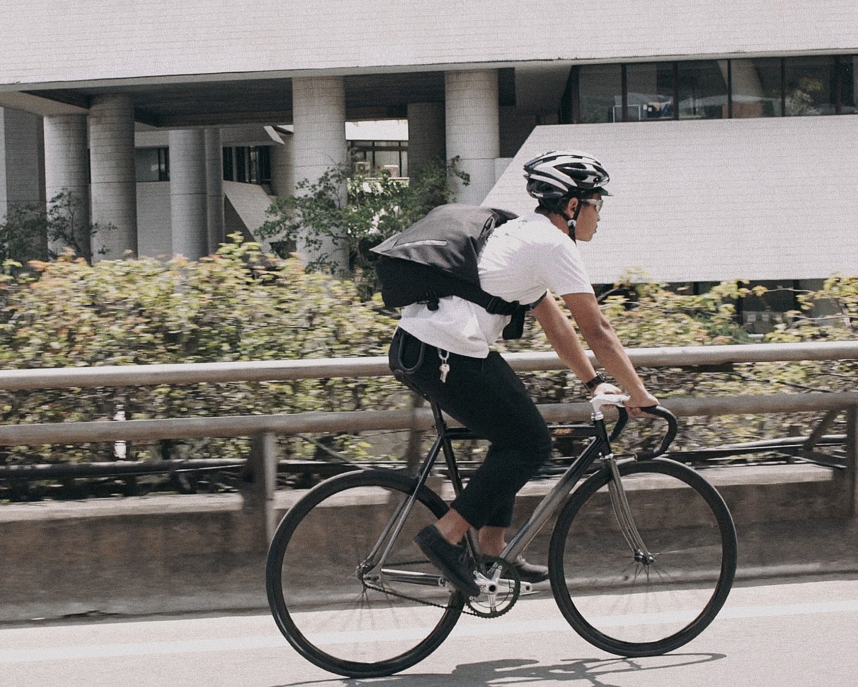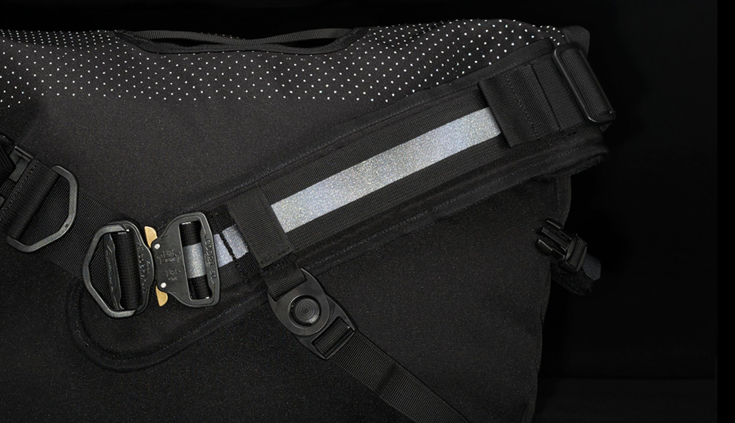 Our mantra has always been "when in doubt, go all black". It's the colorway that is most unsuspecting, inconspicuous, fits just about any occasion, and not to mention badass. Yet, at night, and on the road where safety matters most, the whole bag turns super bright due to thousands of embedded micro retroreflective dots that send light back to its source. Other parts also don't go unchecked, details such as the webbings and trims are treated with 3M® Black reflective finish. You don't have to dress like a road-worker in order to be visible at night. The Eclipse series does not sacrifice form for the sake of feature, on the contrary, it elevates the aesthetic by making a seemingly stealthy bag, highly functional.
