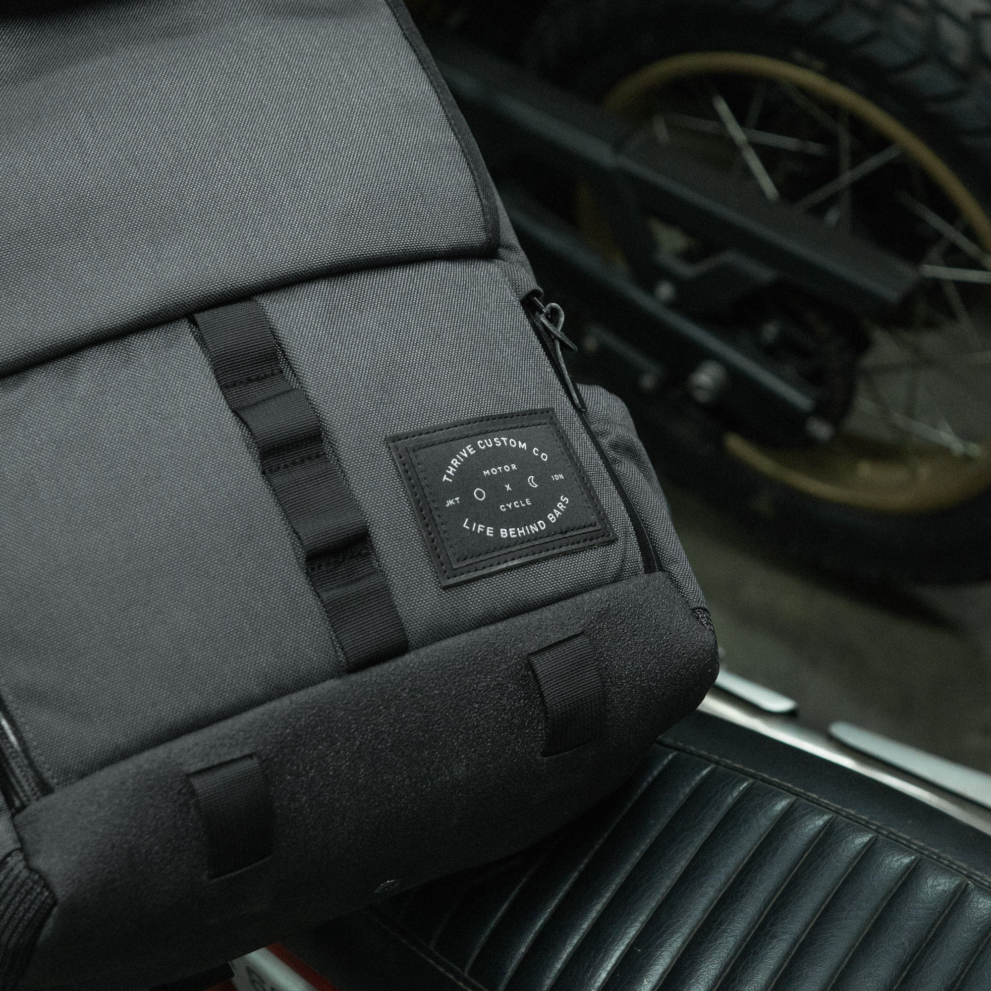 The small version of Peloton Asphalt. Joining forces with Thrive Motorcycle, ‘The Peloton’ ASPHALT [S] Backpack is our most premium bag yet, its high versatility is unprecedented, it is expandable from a modest 25L to a 35L cargo mode for a short weekend getaway. It is as rugged as it is beautiful, made out of 1000D Cordura® Fabric and everything tough, it is weatherproof and ready for abuse.
