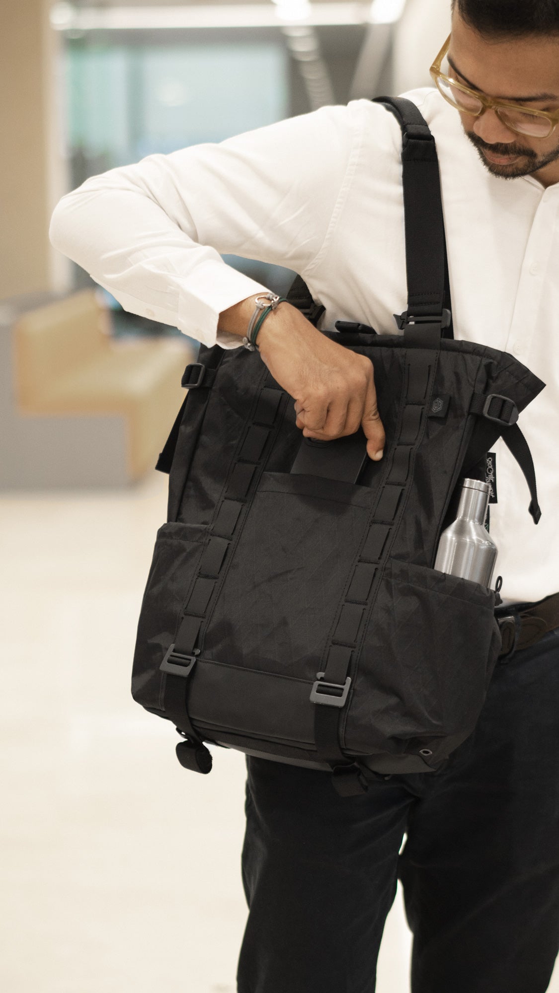 The Transition Tote is our most versatile pack yet. Its smooth transitions from tote bag to backpack, crossbody, or hand-carry aid in shifting between one occasion to another. Comes in 16l compressed and 21l expanded, it can take on the daily needs, yet when fully expanded can take on a 2 to 3 days trip supply. Despite being a tote, the Transition is still packed with features. It’s got a dedicated laptop sleeve up to 15 inches which is double-padded, anti-sway strap, floating pocket, MOLLE compatible loops, external carry capability, and many more. The technicality of the Transition tote is also versatile, meaning it can appear and perform as simply as a regular tote, yet when needed, it can morph into a highly technical pack. The versatility of the Transition Tote transcends on to the users themselves. The more you delve into it, the more you discover its versatility.